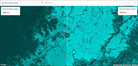 O aplicativo Split Panel contém um controle deslizante com duas imagens separadas lado a lado. Os usuários podem comparar duas imagens de datas diferentes uma ao lado da outra para verificar facilmente as diferenças entre elas.