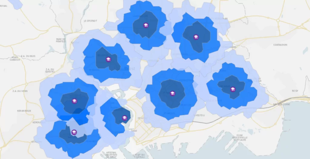 Hoje, você aprenderá mais sobre mapas de tempo de percurso, também conhecidos como mapas isócronos . Mas primeiro, vamos explorar alguns de seus casos de uso.