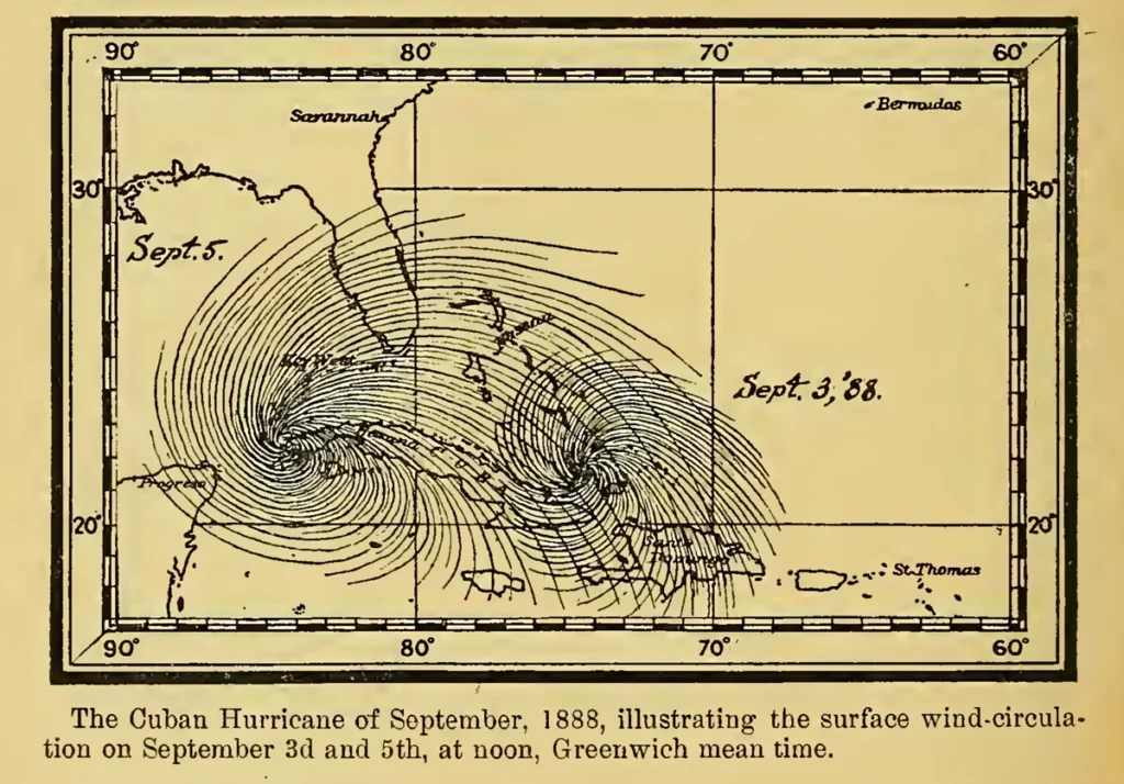 A National Geographic foi a primeira a criar um mapa de um furacão. O volume II da revista National Geographic de 1890 publicou um mapa mostrando a circulação do vento na superfície do furacão cubano entre 3 e 5 de setembro de 1888.
