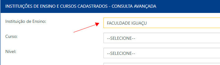 3. Busque no campo “Instituição de Ensino” por “Faculdade Iguaçu”